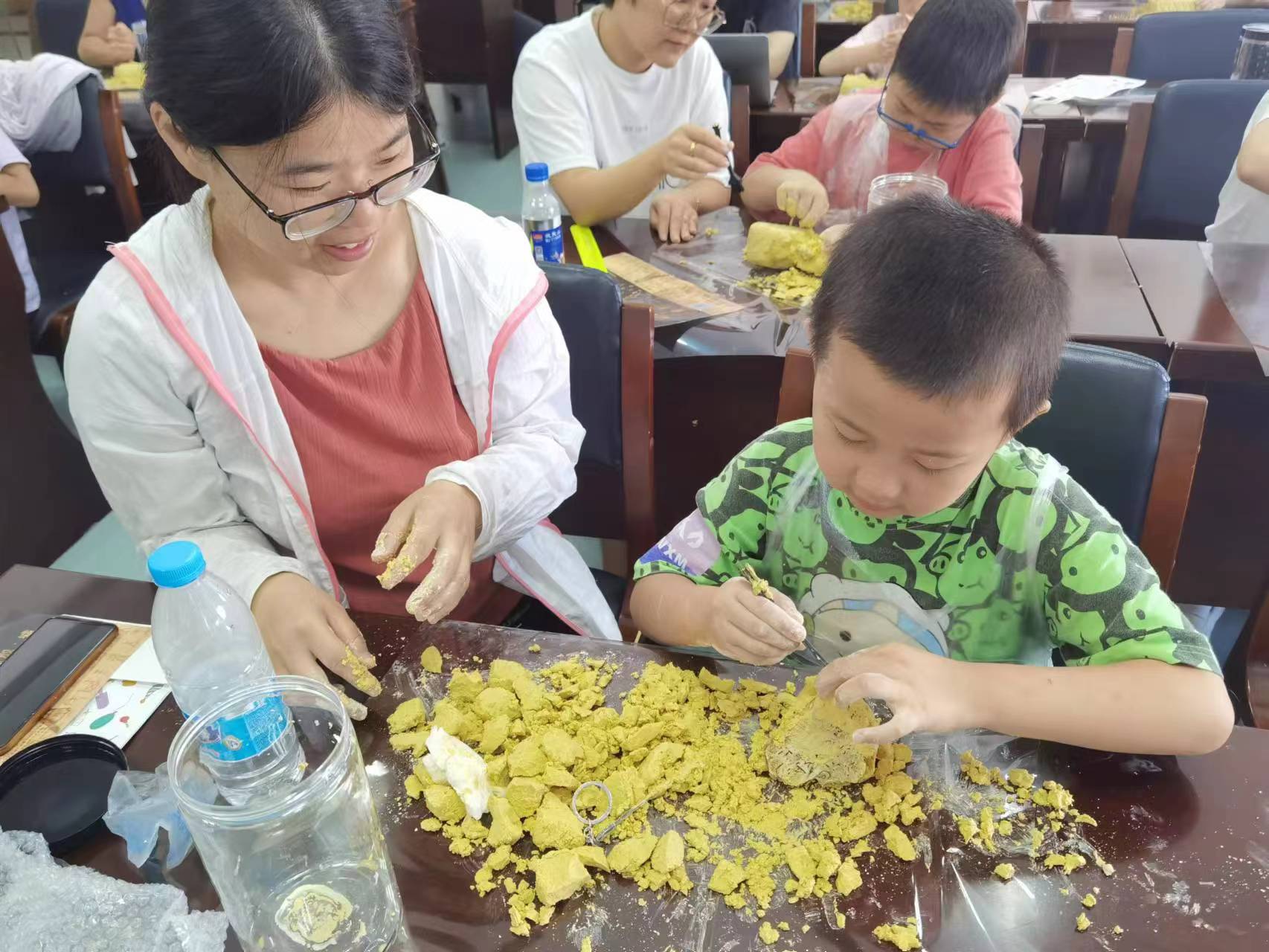 在了解了甲骨文的知识后,孩子在老师的指导下,模拟了一场甲骨文的考古挖掘实验,孩子们的脸上都露出了喜悦的微笑。