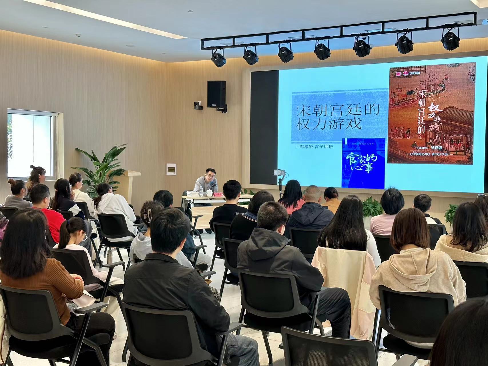 奉贤区图书馆于2024年3月30日在言子书院举办“言子讲坛:宋朝宫廷的权力游戏——《官家的心事》新书分享会”,本次讲座特邀知名宋史专家、浙江大学教授、博士生导师吴铮强教授围绕新书《官家的心事》,从扑朔迷离的宋代宫廷历史事件谈起,带领读者们一起在史料残片中侦破被掩盖的宋朝宫廷政治,探寻宋史真相的正确打开方式。